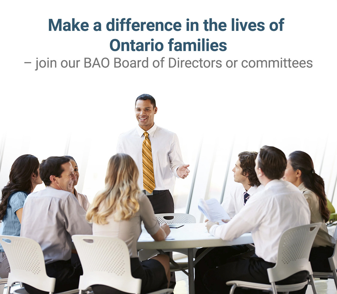 Make a difference in the lives of Ontario families — Join our BAO Board of Directors or committees