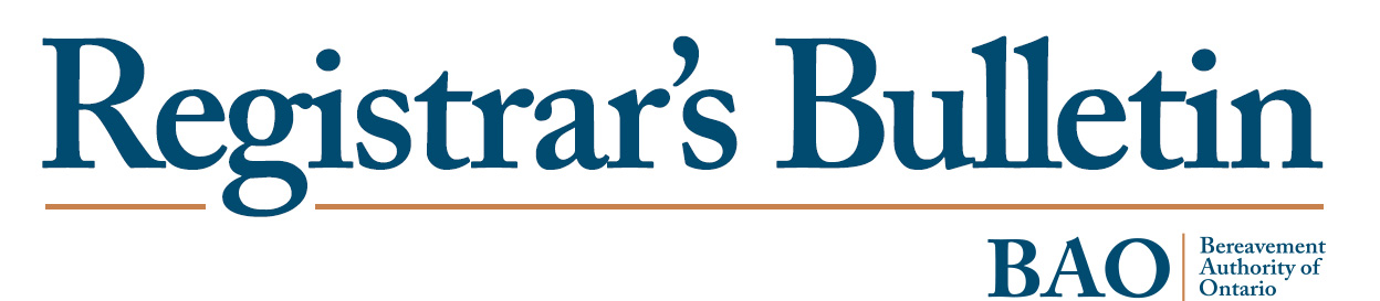 The Registrar’s Bulletin is an ad hoc series for licensed professionals on regulatory topics of the bereavement sector.